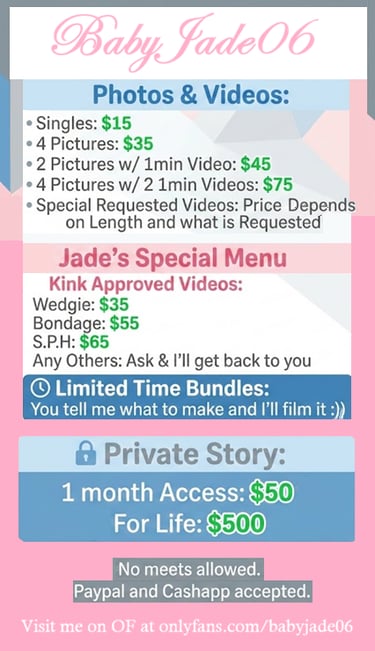 Check out my OF here: https://onlyfans.com/babyjade06