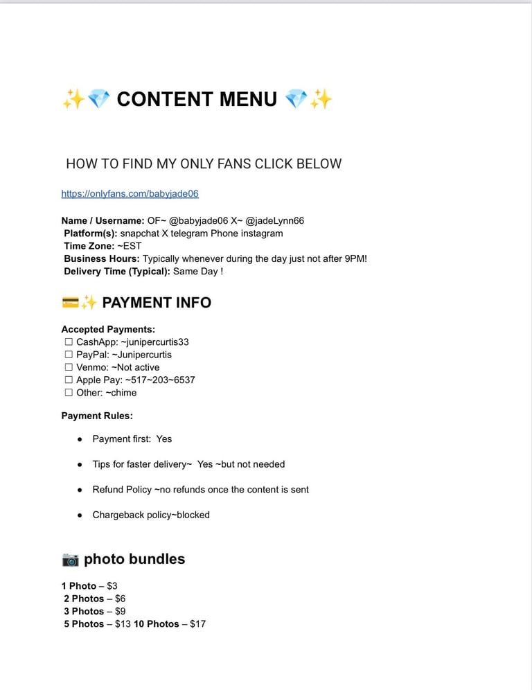 Name / Username: OF~ @babyjade06 X~ @jadeLynn66